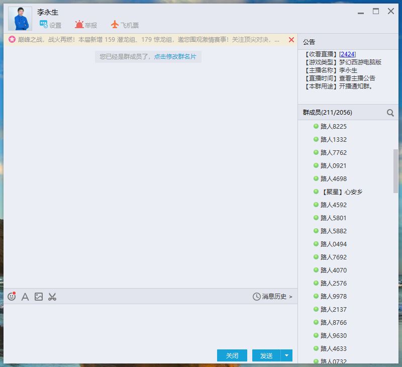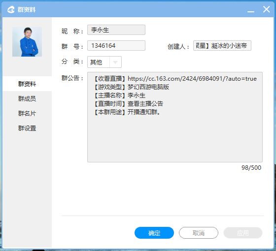 本群用于“开播通知”,信息可以第一时间传送,无需审核。